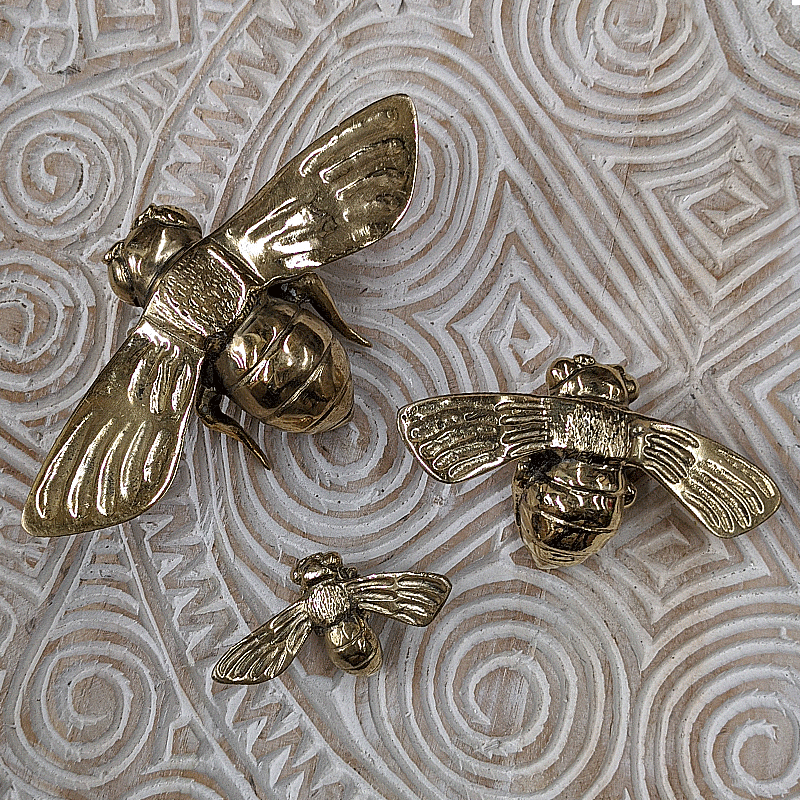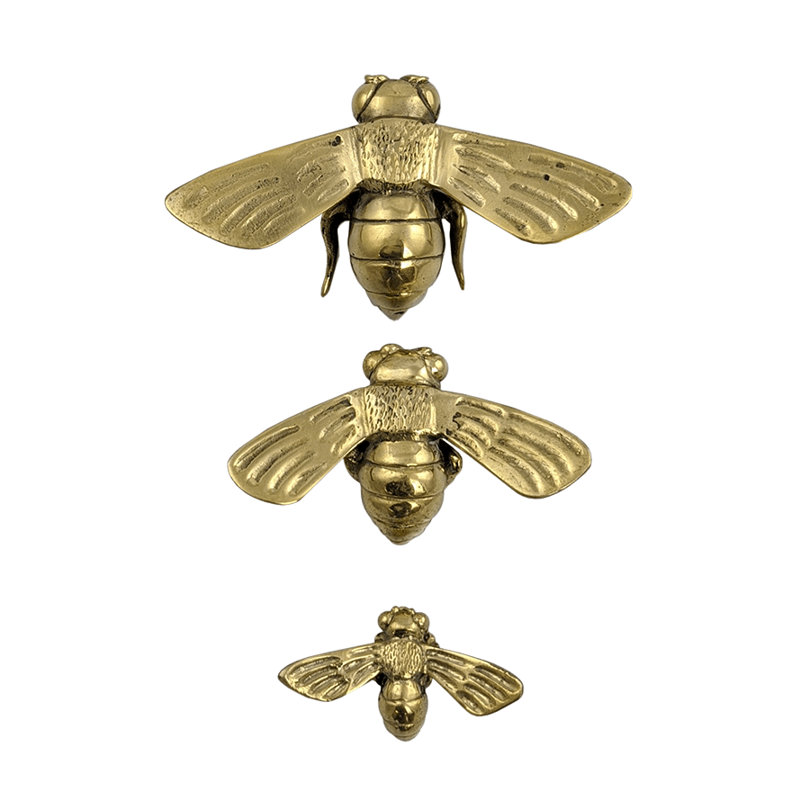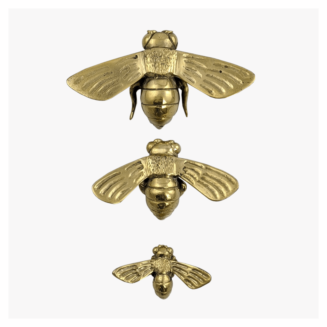 Buzz-worthy brass bumble bees in 3 sizes. Handcrafted from solid brass, perfect for styling, tabletops, or garden accents. A golden touch of nature. Three sizes small, medium and large.